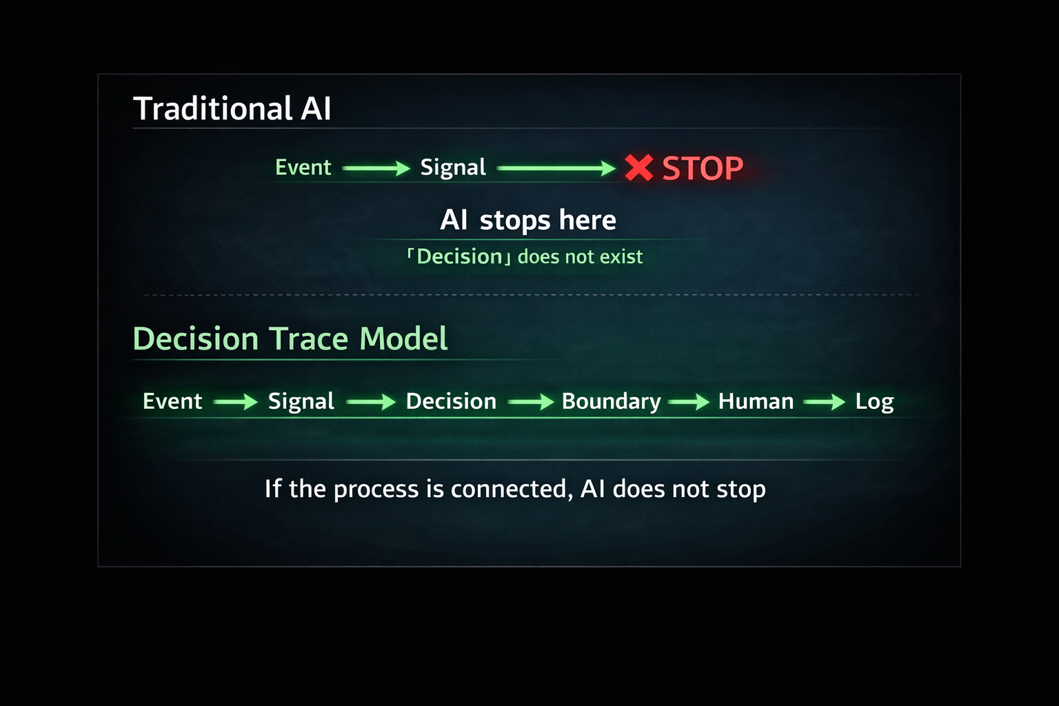 Event → Signal → Decision → Boundary → Human → Log